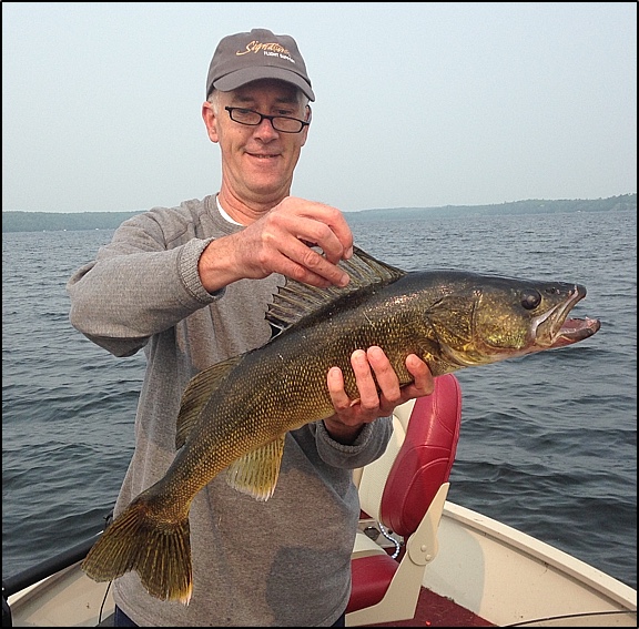 Kevin Muhr released this 27 inch Walleye in Frazer Bay slip bobber with a leech right after releasing a 25 incher on July 2nd. Please excuse the broken glasses, but his brother stepped on them running for the net on the 25 incher!!